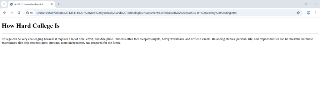 <h1>How Hard College Is</h1>