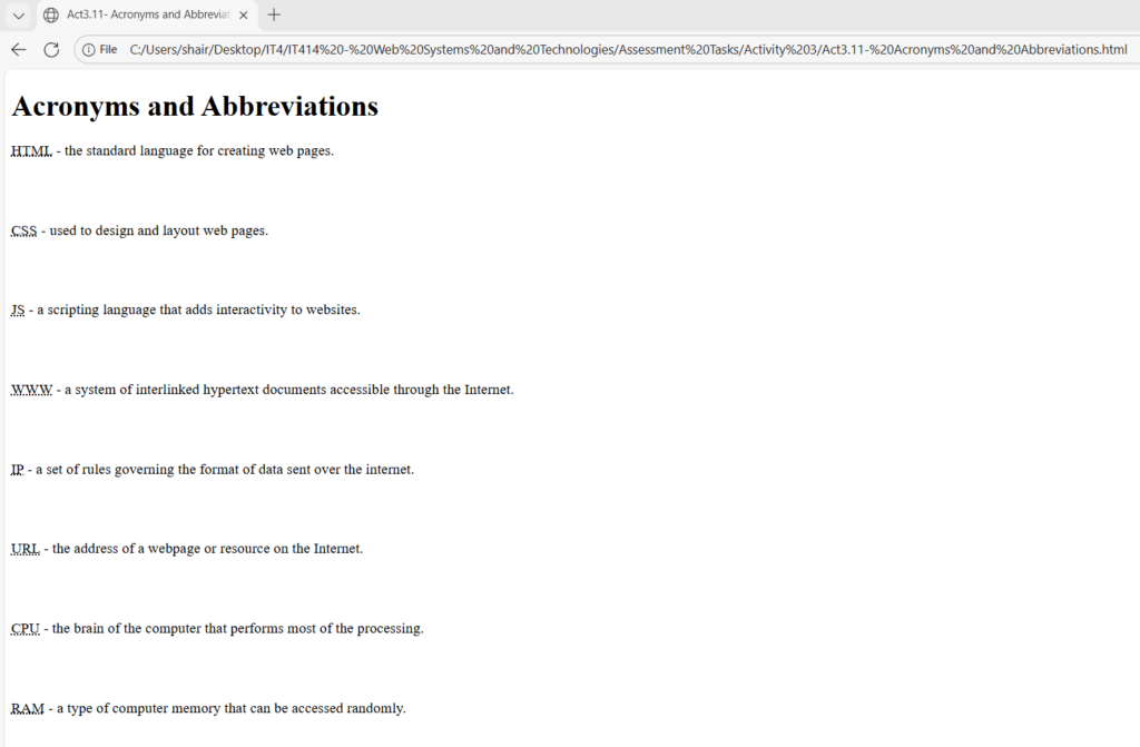 <dd>HyperText Markup Language - the standard language for creating web pages.</dd>