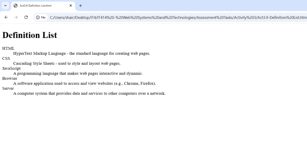 <dd>A software application used to access and view websites (e.g., Chrome, Firefox).</dd>