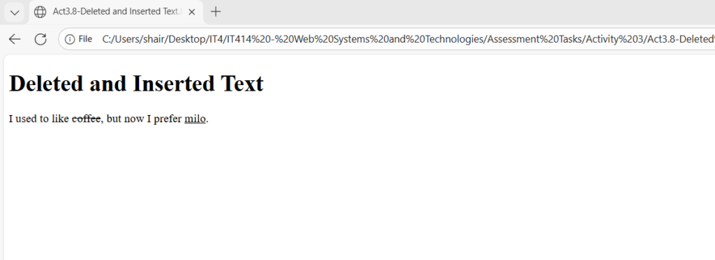 <h1>Deleted and Inserted Text</h1>